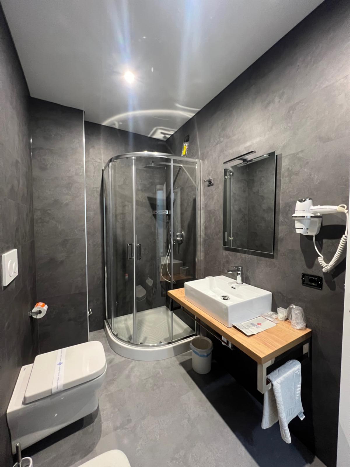 Camera di tipologia SUPERIOR con balcone e climatizzatore dotata di letto matrimoniale e letto singolo. Dispone di bagno privato interno, aria condizionata direttamente programmabile, smart tv, minibar, telefono, phon, wi-fi.